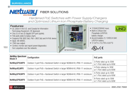 • One (1) or two (2) Gigabit SFP port (uplink) . Phosphate (LiFEPO4)